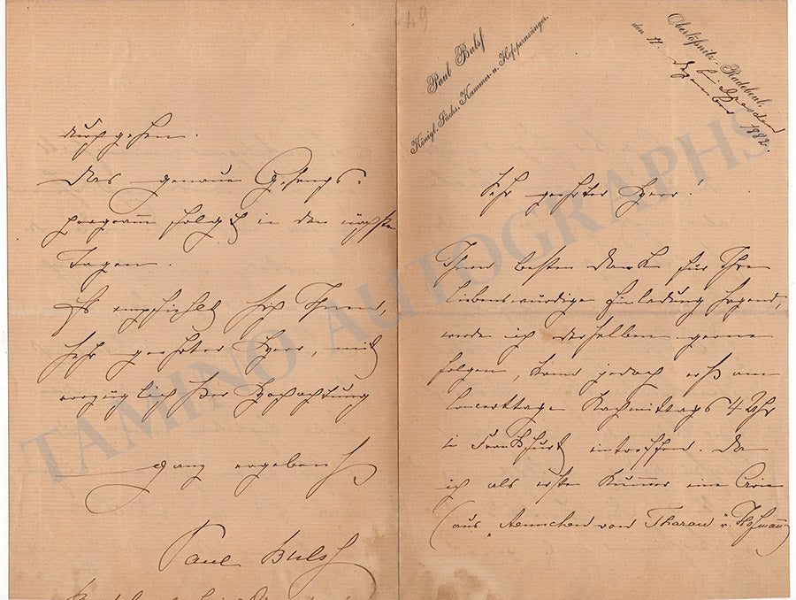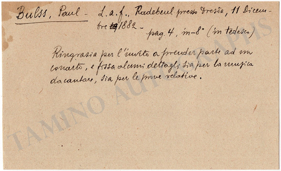 Bulss, Paul - Autograph Letter Signed 1882