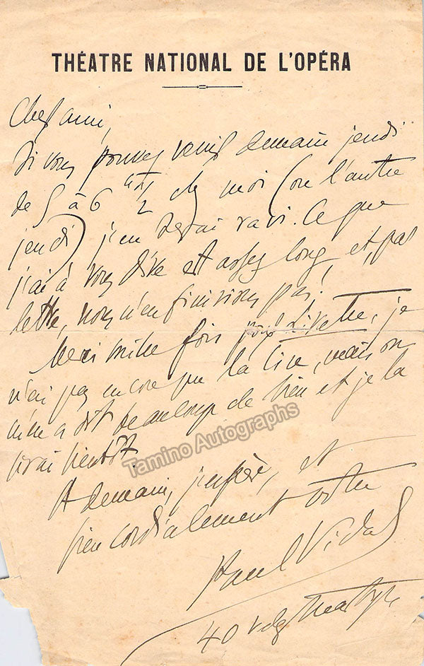 Autograph letter in French (untranslated) signed by him, no date, with letterhead. Size is 5.3 x 8.4 inches, 1 page, loss of paper over the lower-left corner, otherwise in excellent condition.
