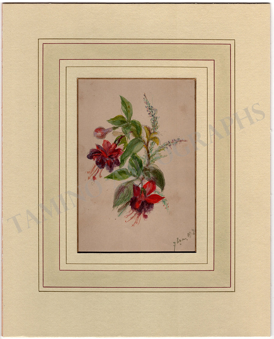 Beautiful autograph aquarell painting attributed to her. Total size is 10.4 x 13.1 inches, actual aquarell is 4.6 x 6.7 inches (visible window size), in excellent condition.
