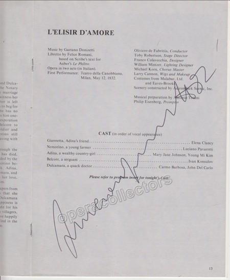 L´Elisir d´Amore program, Philadelphia, signed on cast page, 1982, 7 x 10 inches