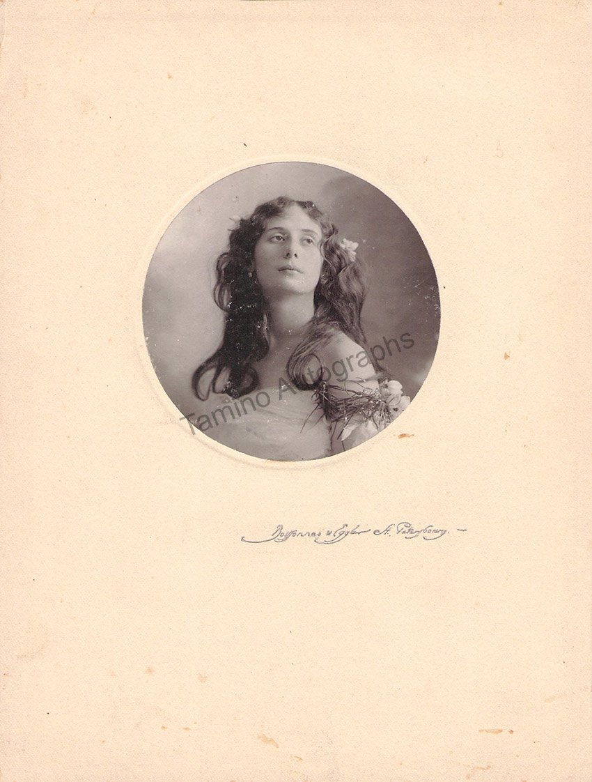 Star Russian ballerina (1881-1931), original photo stamped on front by Boisonnas & Eggler, St. Petersburg, Russia. Size is 6.75 x 8.9 inches, minor scratches and stains, mounting traces on verso, in very good condition.