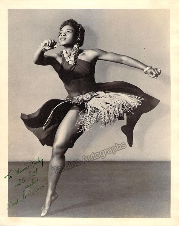 Trinidad-born American dancer (1919-1994) and also choreographer and anthropologist. Signed photo shown in performance, inscribed. Size is 8 x 10 inches, in excellent condition.
