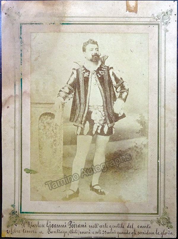 Italian tenor (1868-1901) who died tragically at 33 while on tour.  Original vintage photo from his time; photo is mounted on a cardboard of 9 x 11.8 inches in size, actual photo is 6.1 x 8.4 inches in size; stains over cardboard affecting upper left corner of the photo, some fading, in good condition.