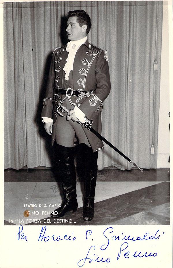 Italian tenor (1920-1998), signed photo, shown as Don Alvaro in Verdi's La Forza del Destino, inscribed. Stamped on verso by photographer Troncone, Naples. Size is 4.5 x 7 inches, some bending but in otherwise excellent condition.