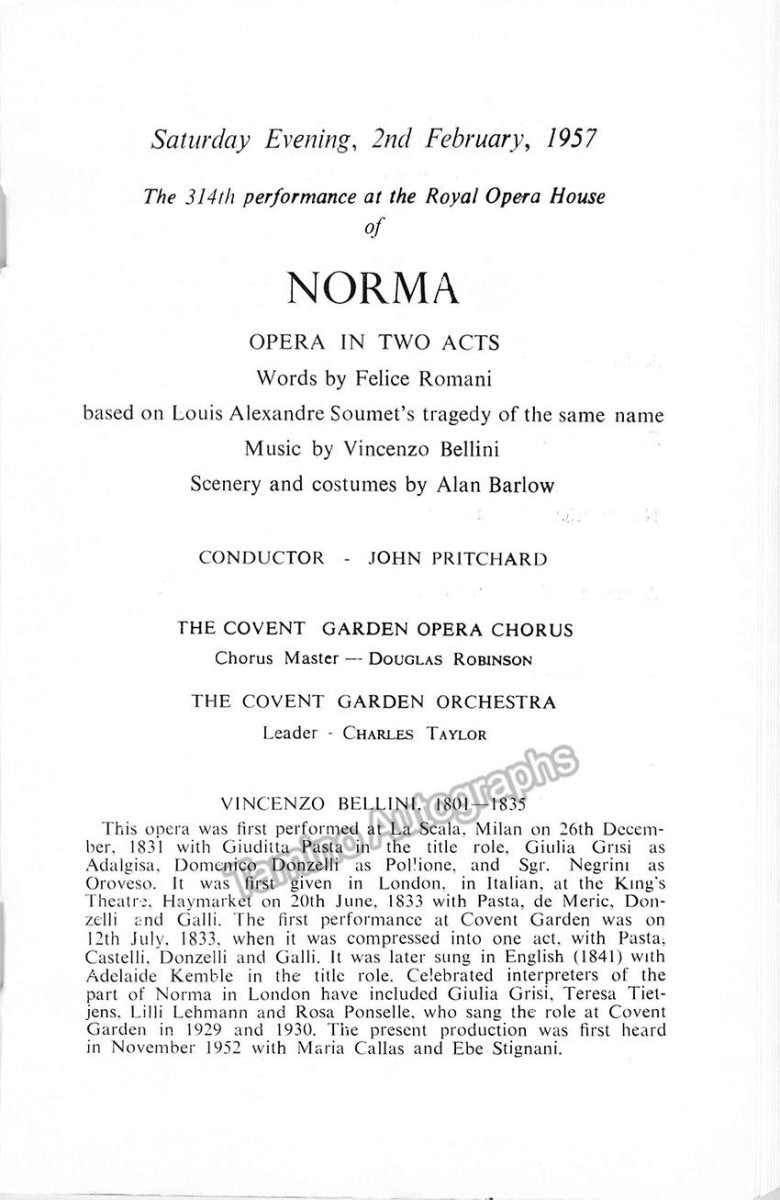 Performance Program "Norma" Royal Opera House 1957 - Tamino Performance Program "Norma" Royal Opera House 1957 - Tamino