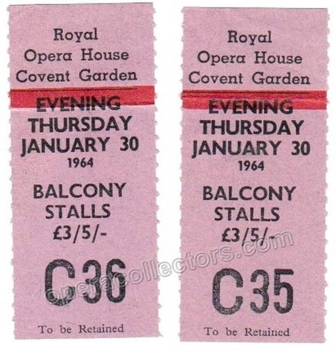 Tosca program at Royal Opera House, Covent Garden, January 30th, 1964. Maria Callas in the title role, full program with 2 ticket stubs, in excellent condition