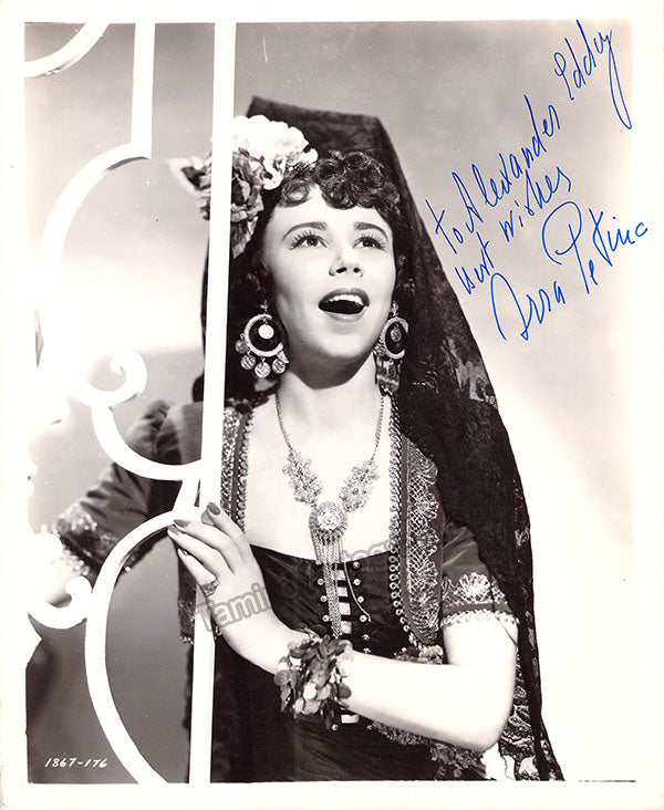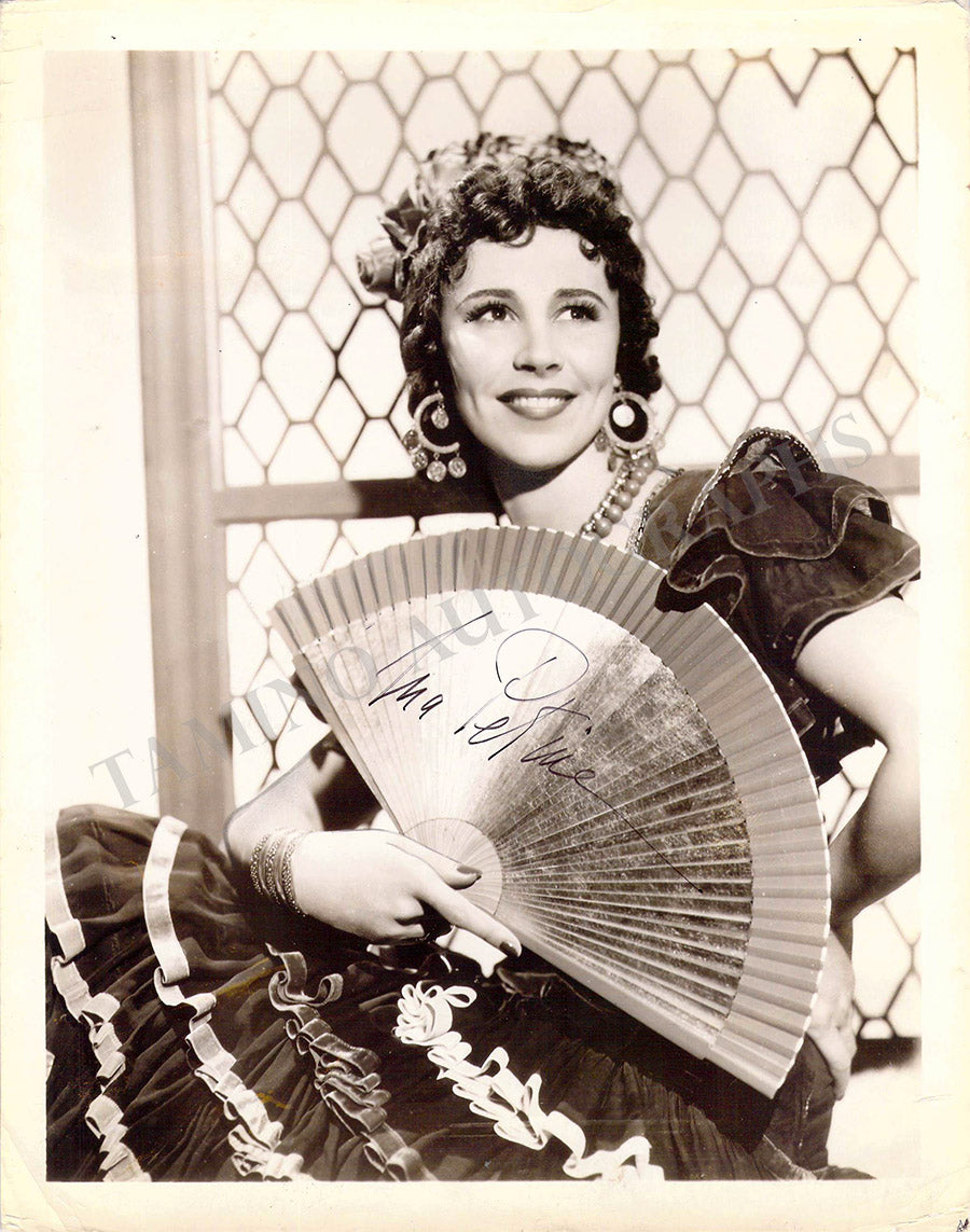 Signed photograph showing her in role (likely title role of Bizet's Carmen). Size is 8 x 10 inches, in very good condition.
