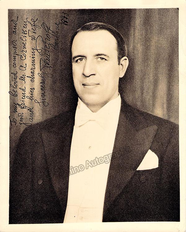 Bulgarian baritone (1897-1963), large signed photo, shown as himself, dated in 1943. Inscribed with sentiment. Size is 8 x 10 inches, slight wear on edges but otherwise in excellent condition.