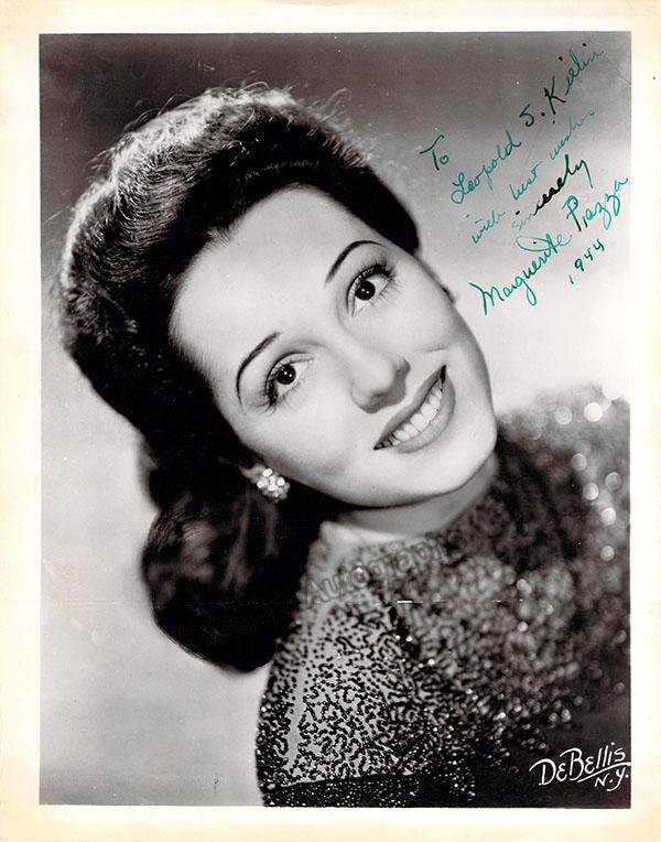 Signed photograph, shown as herself, inscribed, and dated in 1944. Photograph by DeBellis, New York. Size is 8 x 10 inches, small crease on bottom right corner, otherwise in excellent condition.
