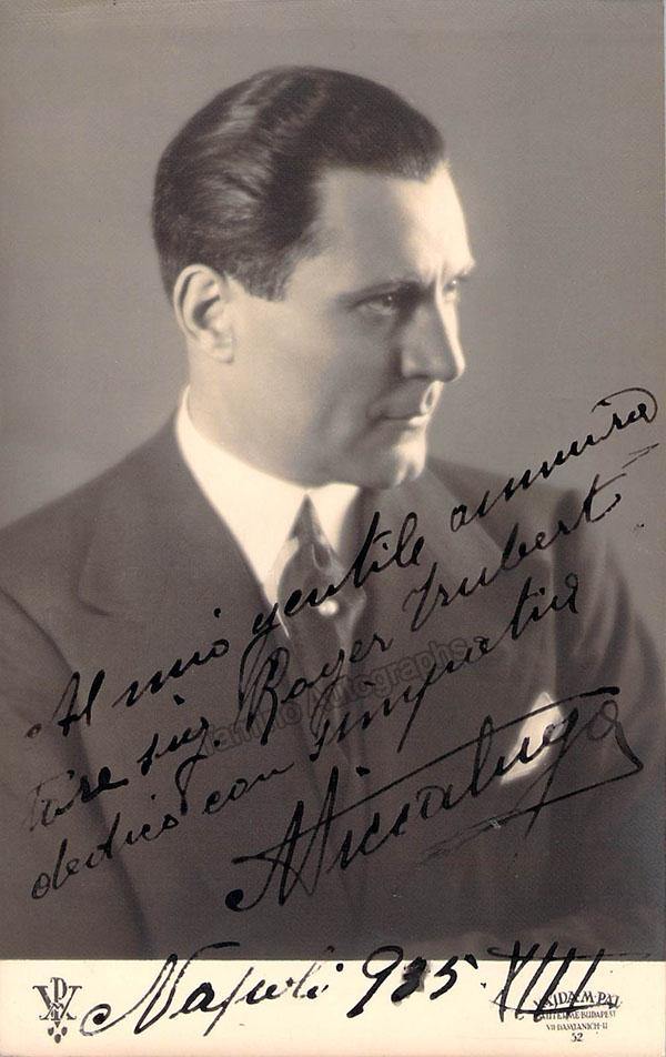 Italian tenor (1890-1973), signed postcard photograph, shown as himself, inscribed and dated in Naples in 1935. Photograph by Vajda M. Pal, Budapest. Size is 3.25 x 5.25 inches, in excellent condition.