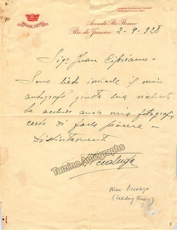 Piccaluga, Nino - Autograph Letter Signed 1928