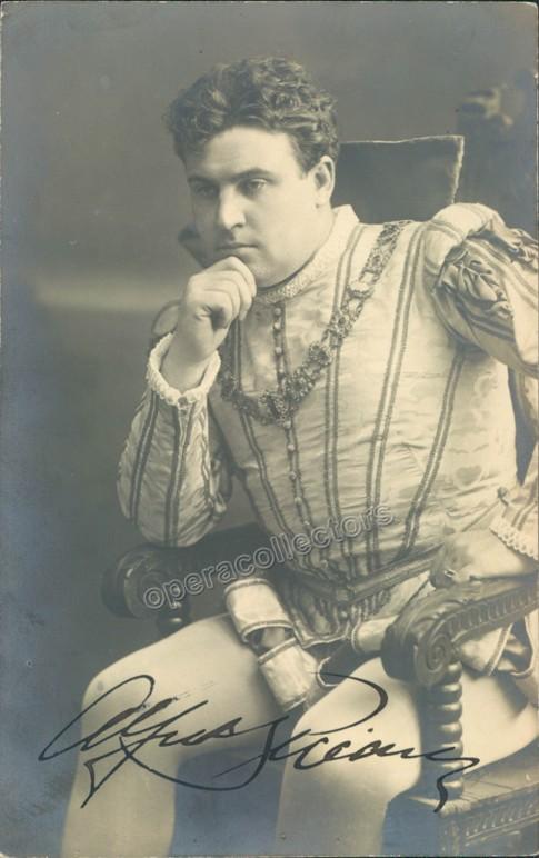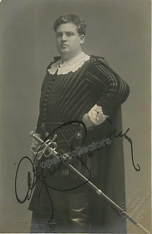 Signed portrait postcard, shown in role. Size is 3.5 x 5.5 inches. Blind stamped on front by photographer L. Gutmann, Vienna, in excellent condition.