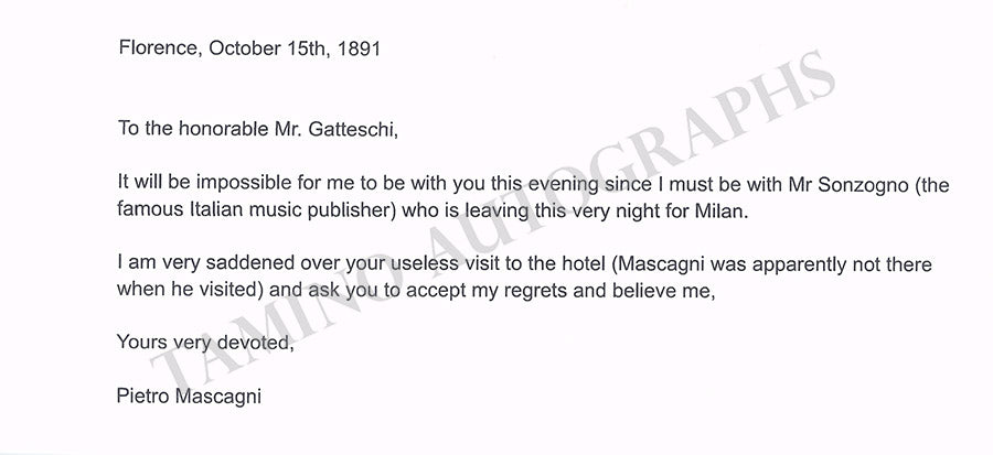 Mascagni, Pietro - Autograph Letter Signed Mascagni, Pietro - Autograph Letter Signed Mascagni, Pietro - Autograph Letter Signed