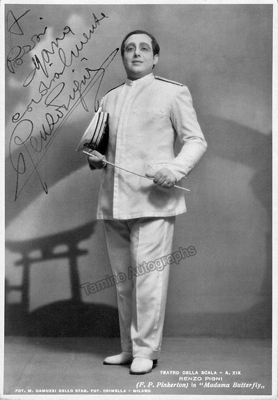 Signed photograph, shown Pinkerton in Puccini's Madama Butterfly, inscribed. Photograph by M. Camuzzi, La Scala, Milan. Size is 4 x 5.75 inches, in excellent condition.