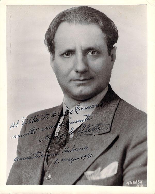 Italian baritone (1895-?), large signed and inscribed photo, shown as himself, dated in 1941. Size is 8 x 10 inches with slight crease on upper right and wear on edges but otherwise in very good condition.