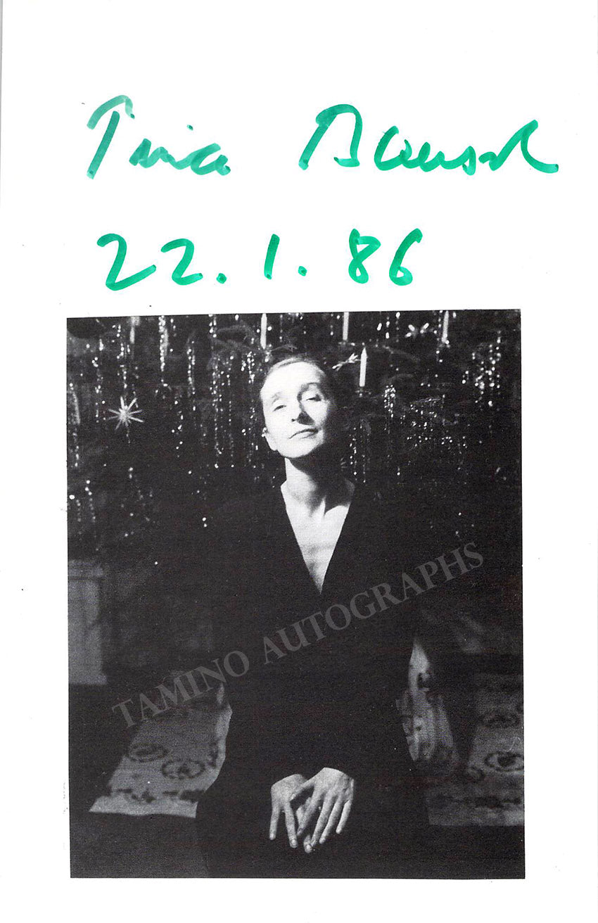 Fine card signed by her attached with a half-tone photograph of her, dated January 22, 1986. Size is 4.9 x 6.8 inches, in excellent condition.