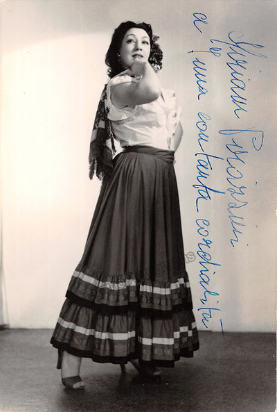 Signed photograph, shown in the title role of Bizet's Carmen. Size is 4 x 5.75 inches, in excellent condition.