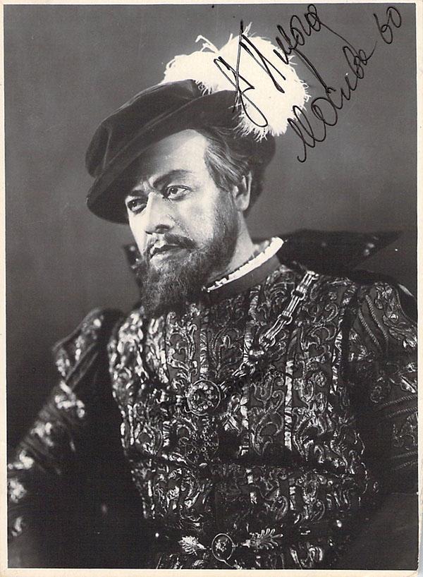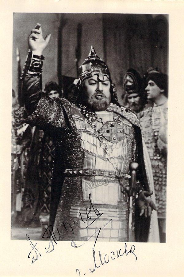 Signed photo, shown in role in Tchaikovsky's Iolanta, dated in 1960. Size is 3 x 4.25 inches, in excellent condition.
