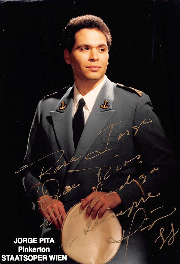 Signed photo, of the opera tenor, shown as Pinkerton in Madama Butterfly. Inscribed. Stamped on verso by photographer Fayer, Vienna. Size is 4 x 5.75 inches.