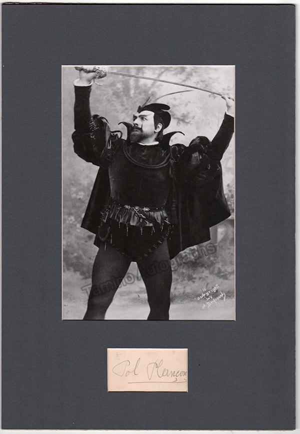 French bass (1851-1914), one of the most acclaimed basses of the Golden Age of Opera. Signature cut, matted with a large striking unsigned photo in role (most likely Mephistopheles in Faust), blind stamped by photographer. Total mat size is 10 x 14.5 inches, signature is 2.75 x 1.5 inches (visible window size), photo window is 6 x 8.75 inches, in excellent condition.