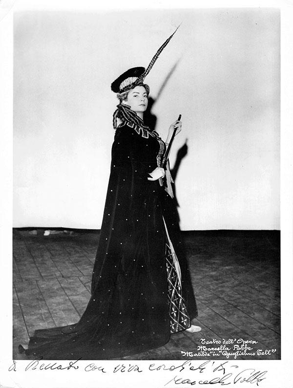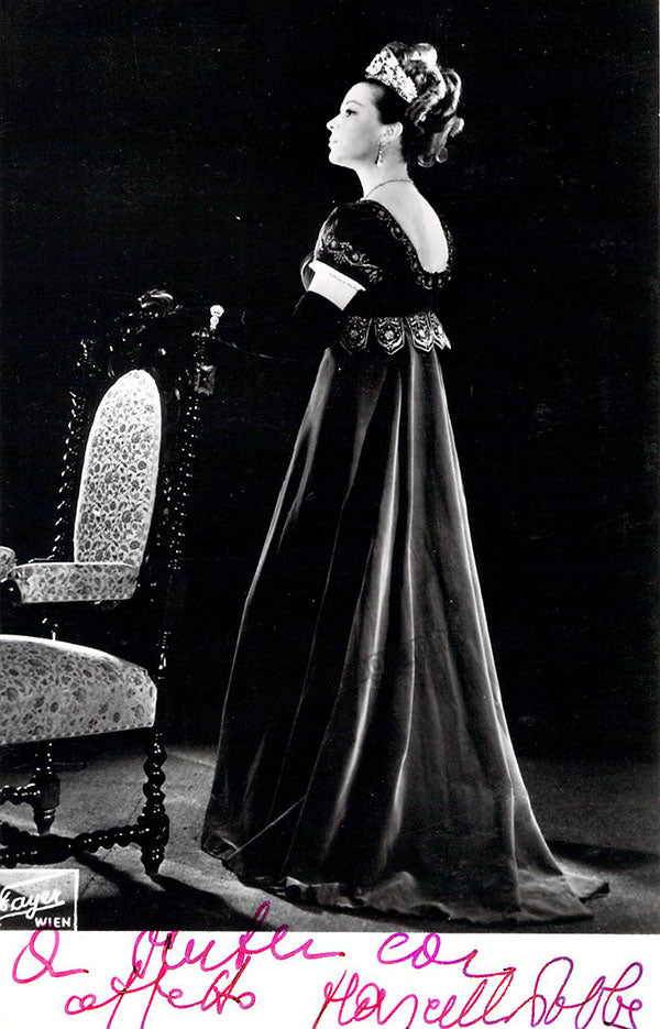 Signed photograph, shown in role (possibly Verdi's Aida), inscribed. Stamped on verso by Ansa photo studio. Size is 7.25 x 9.25 inches, mounting traces on verso, otherwise in excellent condition.