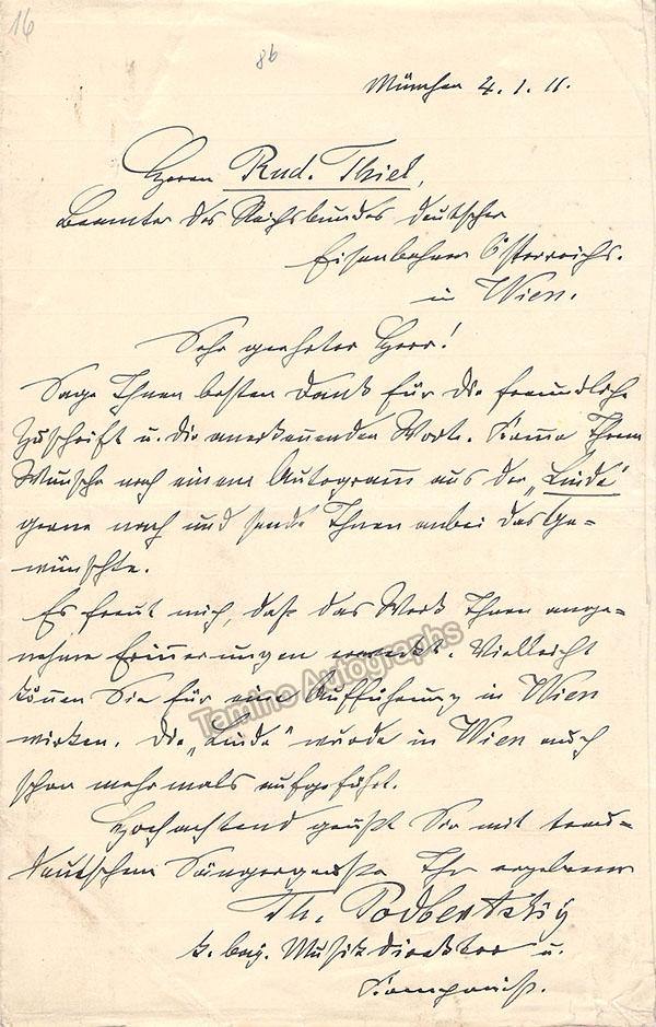Podbetsky, Theodor - Autograph Letter Signed 1911