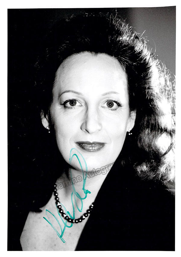 Signed photo, shown as herself. Stamped on verso by photographer Monika Rittershaus, Berlin. Size is 4.1 x 5.75 inches.