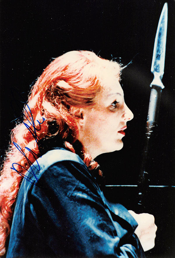 Signed photo, shown as Brunnhilde in Richard Wagner's Der Ring des Nibelungen. Size is 4 x 5.75 inches, in excellent condition.