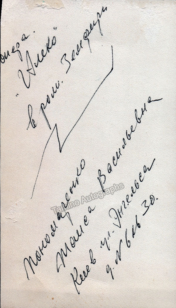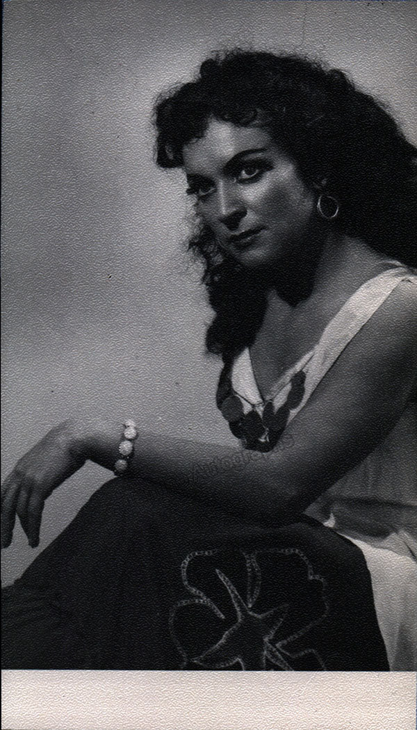 Ukrainian soprano (b. 1925), signed photograph, shown in role (possibly Bizet's Carmen), signed and inscribed on verso. Size is 3.25 x 5.5 inches, in excellent condition.