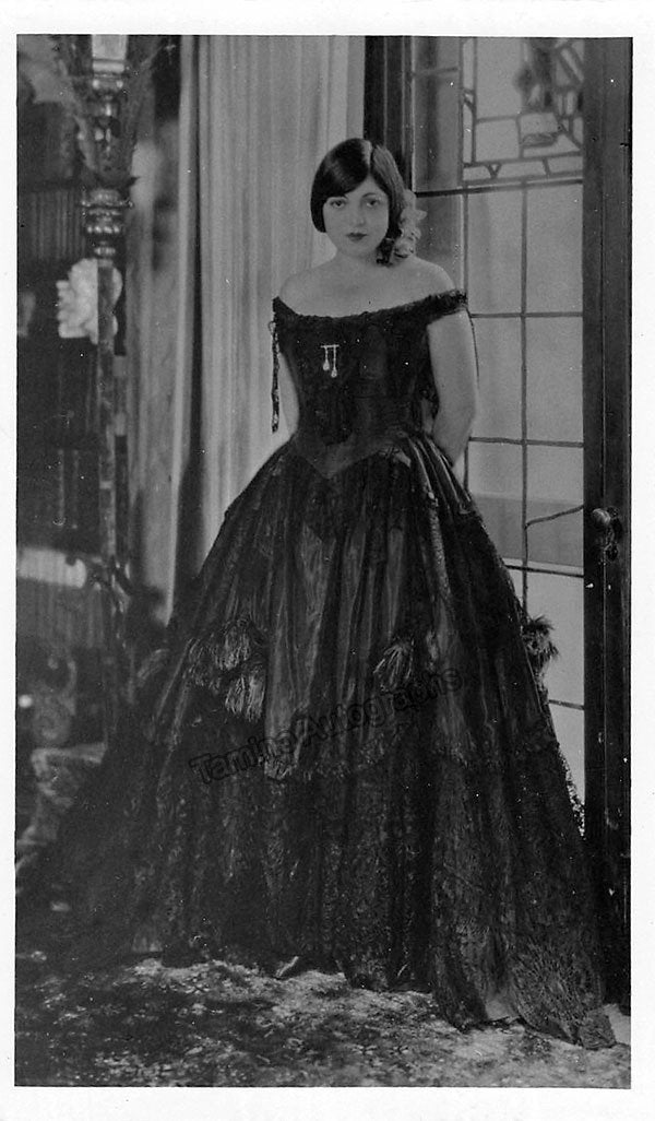 American soprano (1897-1981), signed photo postcard, shown as herself at her home Villa Pace. Signature is on verso. Size is 3.25 x 5.5 inches