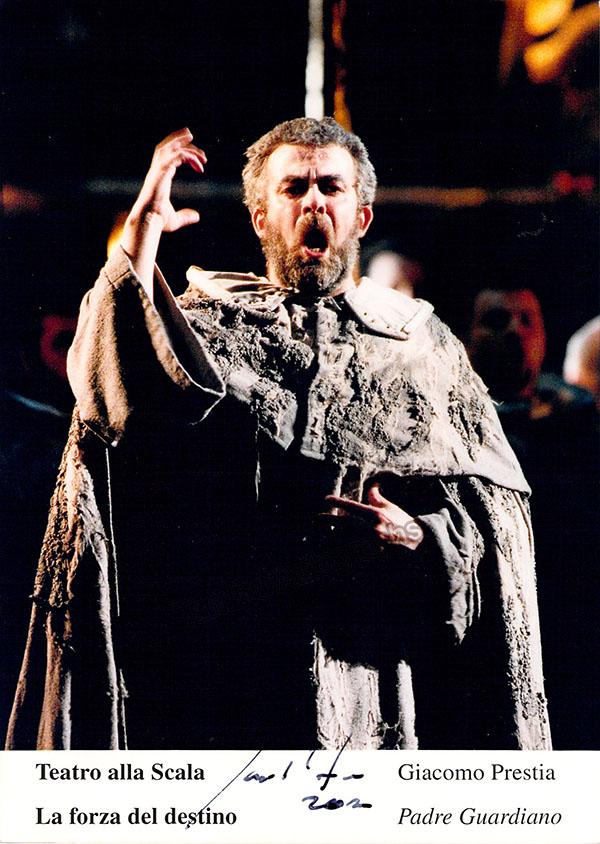 Italian bass (b. 1960), signed photo, shown as Padre Guardiano in Verdi's La Forza del Destino, singed in 2002. Photo by A. Tamoni, La Scala, Milan. Size is 5 x 7 inches, in excellent condition.
