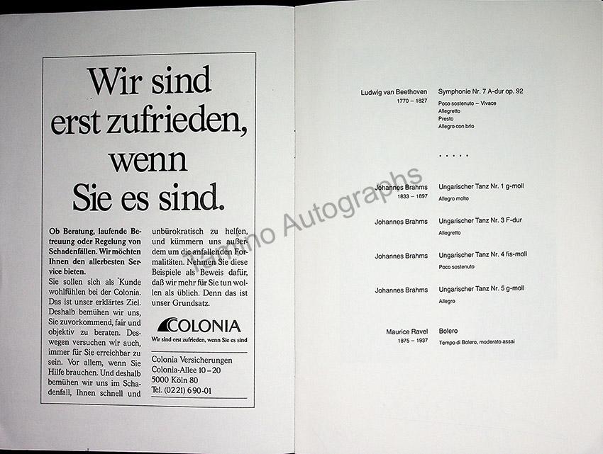 Pretre, Georges - Signed Program Cologne 1989 - Tamino Pretre, Georges - Signed Program Cologne 1989 - Tamino Pretre, Georges - Signed Program Cologne 1989 - Tamino