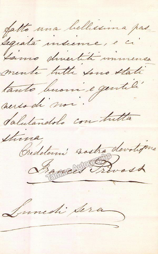 Prevosti, Franceschina - Autograph Letter Signed - Tamino Prevosti, Franceschina - Autograph Letter Signed - Tamino