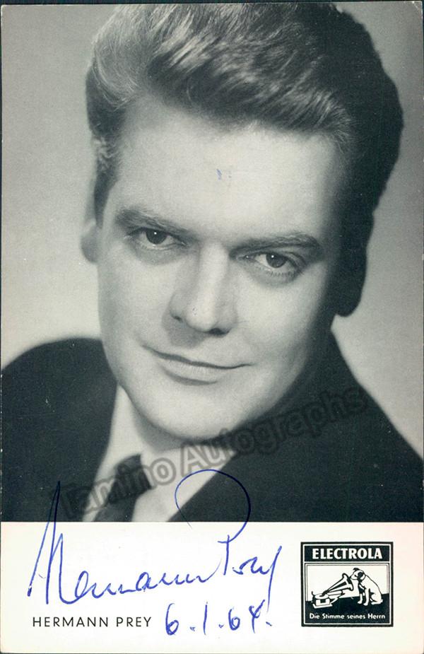 PREY, Hermann (1929-1998), German baritone, signed promo photo shown as himself dated in 1964, size is 3.5 x 5.5 inches.