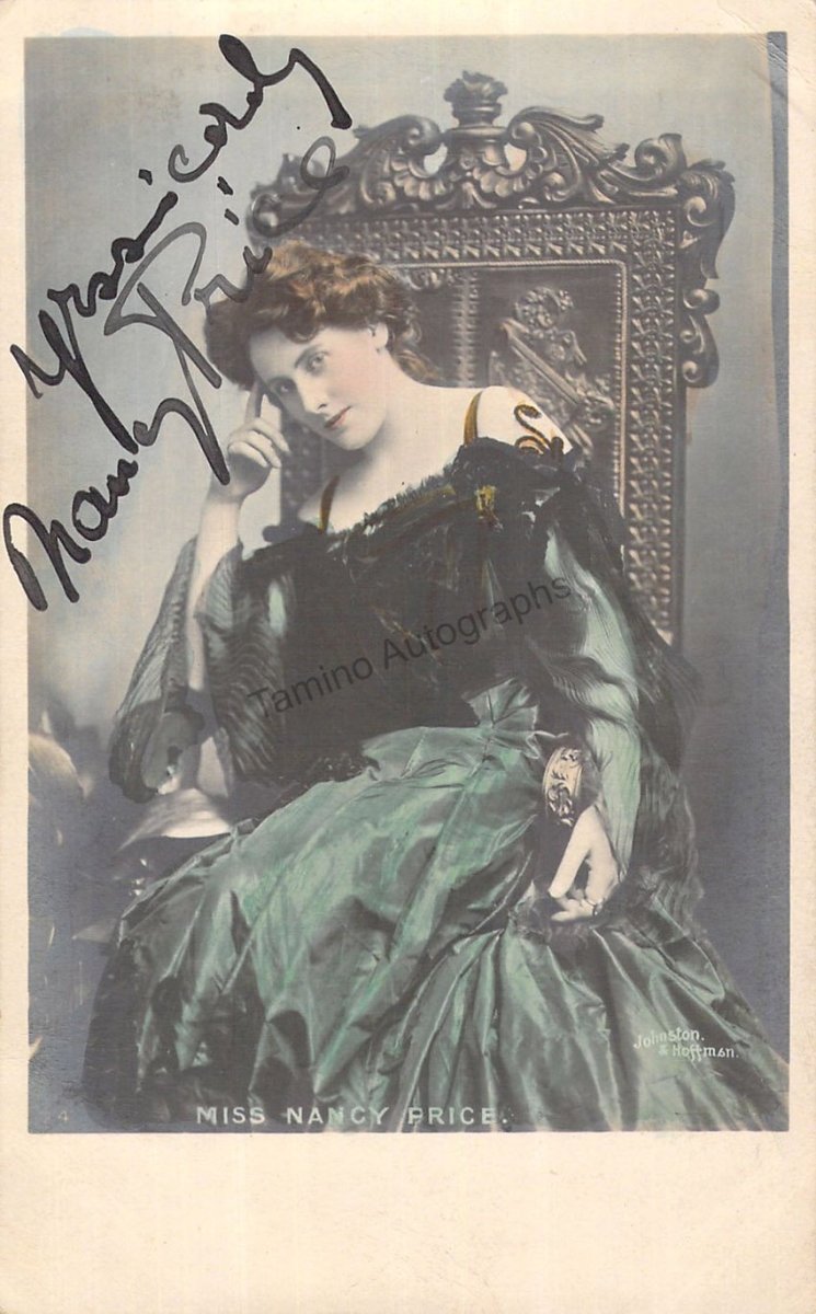 English actress (1880-1970). Beautiful colorized photo postcard signed by her. Size is 3.4 x 5.4 inches, some silvering on all four corners, minor creases, otherwise in very good condition.