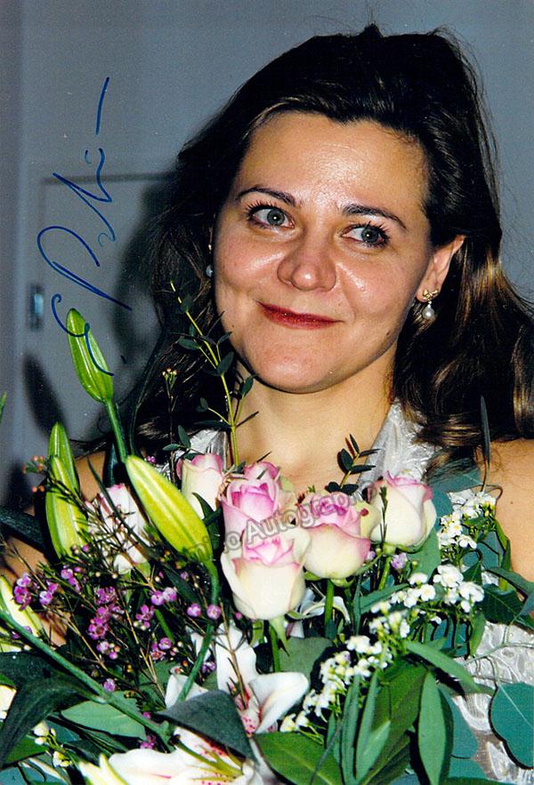 Russian soprano (b.1964), signed photo shown as herself. Size is 4 x 5.75 inches, in excellent condition.