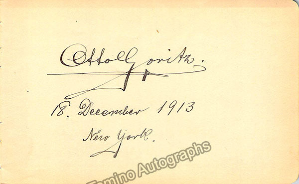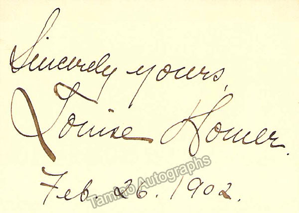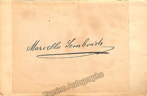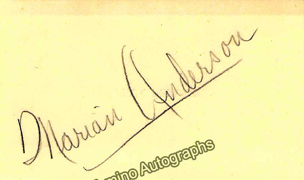 Collection of eight autographed items by prominent opera singers from the early to mid-twentieth century including signed cards, signed album pages, signature cuts, along with one unsigned photo postcard. Signatures are from such leading artists as Antonio Scotti, Bidu Sayo, Emma Eames, Louise Homer, Marcella Sembrich and Marian Anderson, among others, the unsinged photo postcard is also of Emma Eames, shown in role. Autograph item sizes range from 2 x 3 inches to 4.5 x 7.5 inches, the postcard is 3.5 x 5.5 inches. Most have very clear handwriting and signatures and all are in extremely good, well-preserved condition. See scans - not sold individually.