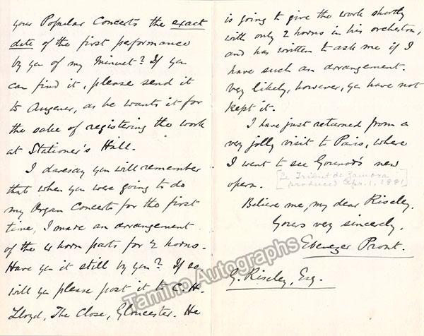 Prout, Ebenezer - Autograph Letter Signed 1887 - Tamino Prout, Ebenezer - Autograph Letter Signed 1887 - Tamino