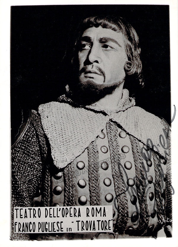 Signed photograph, shown as King Phllip in Verdi's Don Carlo, dated in 1968. Stamped on verso by photographer Angelini, Rome. Size is 4 x 5.75 inches, in excellent condition.