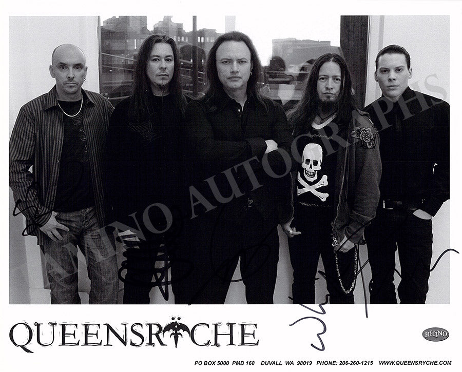 Black-and-white promo photograph signed by all five members. Size is 9.9 x 8 inches, in excellent condition.