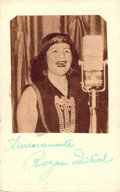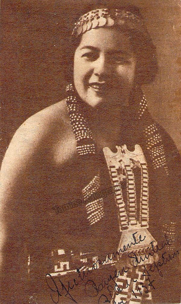 Signed photo postcard, shown as herself. Size is 3.5 x 5.5 inches, in excellent condition.