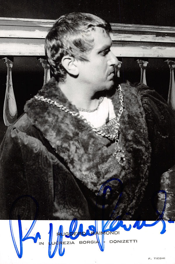 Beautiful black-and-white promo photograph signed by him, shown in costume as Alfonso D'Este in Donizetti's Lucrezia Borgia. Size is 3.75 x 5.5 inches, in excellent condition.