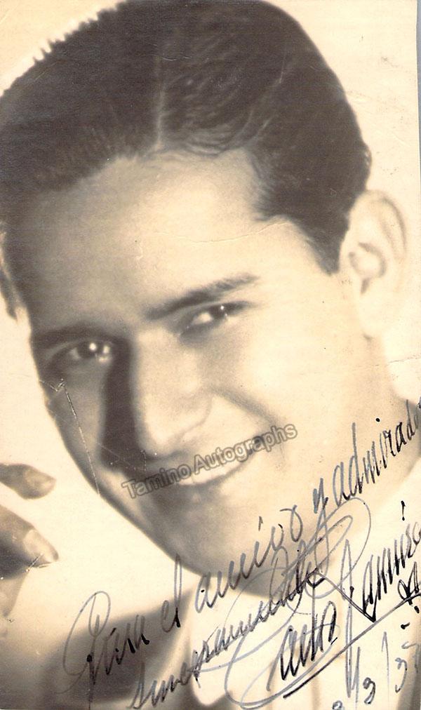 Colombian baritone and actor (1914-1986) known for his contract work with MGM studios, signed photo, shown as himself. Inscribed with sentiment, dated in 1939. Size is 3 x 5 inches, in very good condition.