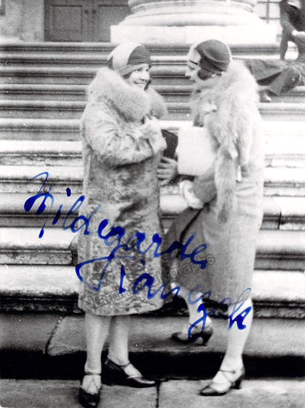 Signed photo, shown as herself with soprano colleague Maria Nezadal. Size is 4 x 5.5 inches, in excellent condition.