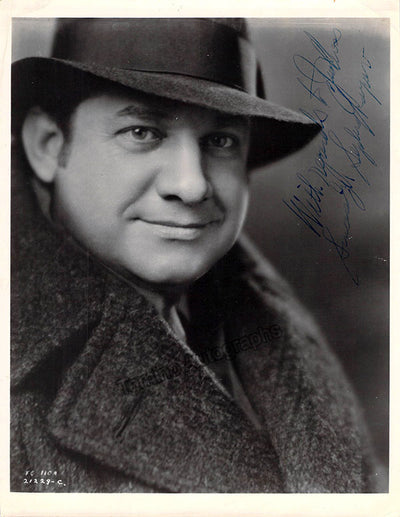 Signed photograph, shown in role, inscribed. Size is 8 x 10 inches, several creases and bends, otherwise in good condition.