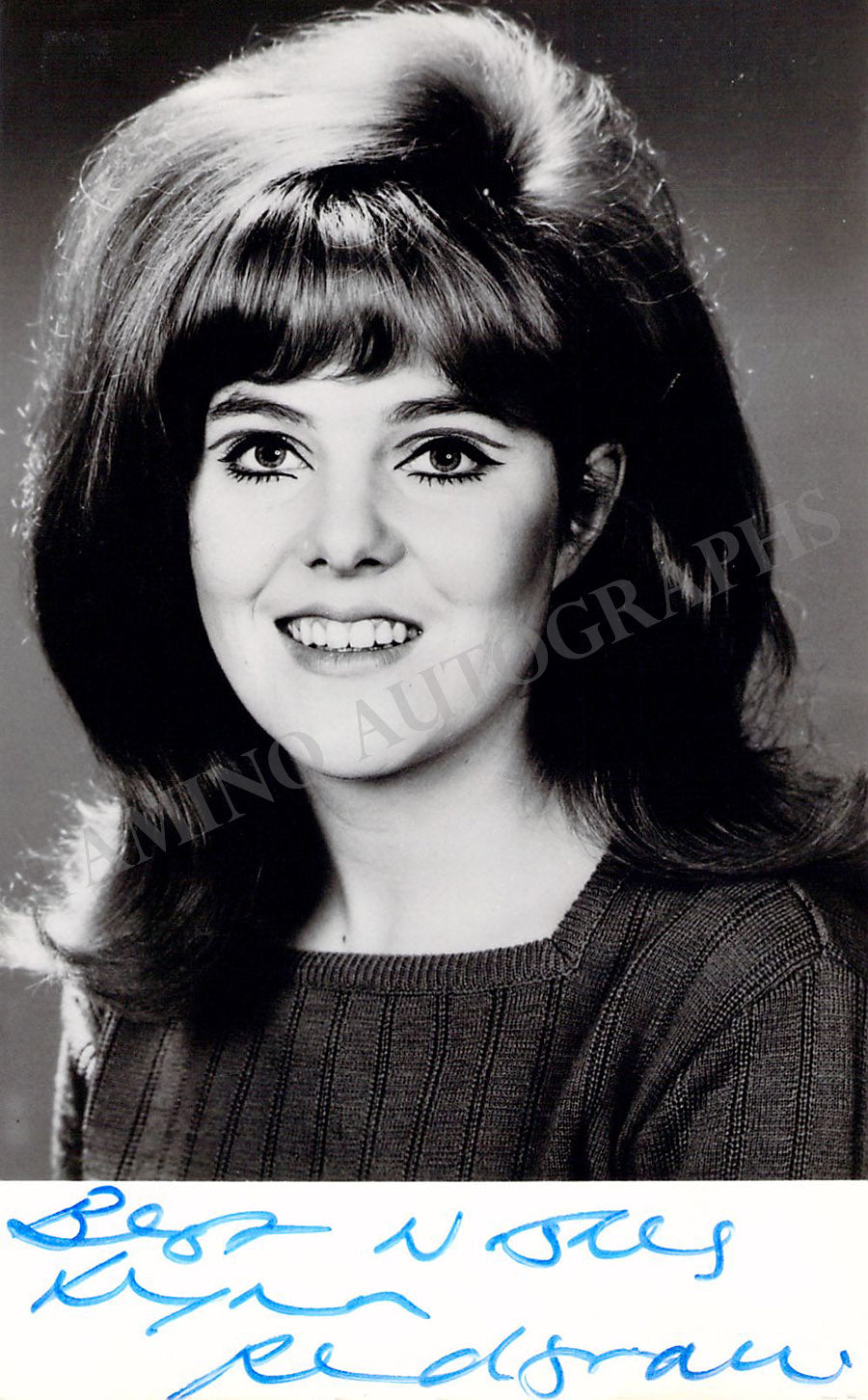 Striking black-and-white photograph signed by her, shown young. Size is 3.5 x 5.5 inches, slight warping at top and bottom of the item, otherwise in excellent condition.