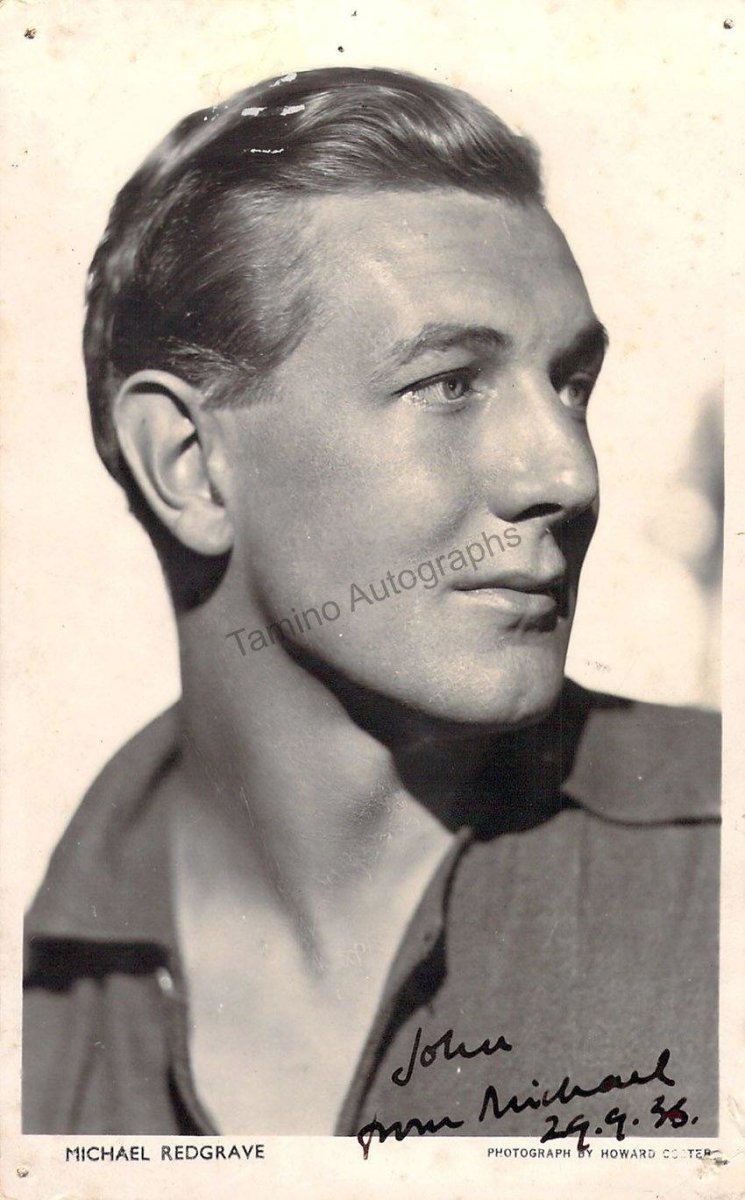 English stage and film actor (1908-1985) & also director, active between 1933 and 1982.  Signed photo postcard shown young, dated in 1936.  Size is 3.5 x 5.4 inches, pinholes in all four corners, mounting traces on verso, in very good condition.