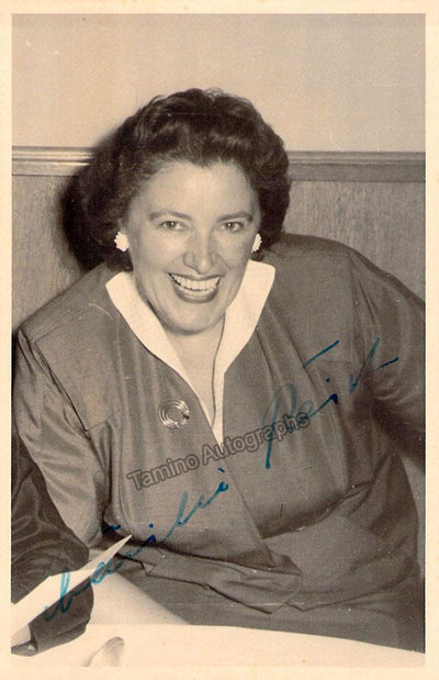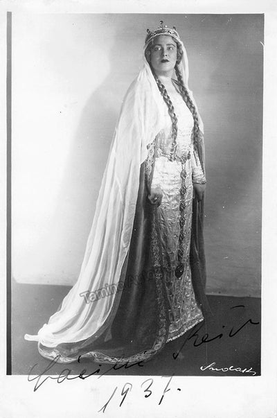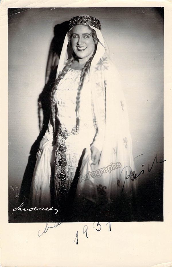 Signed photograph, shown as Elisabeth in Wagner's Tannhauser, dated in 1937. Stamped on verso by photographer Sudak, Teatro Colon, Buenos Aires. Size is 4.5 x 7 inches, small creases and bends, otherwise in very good condition.
