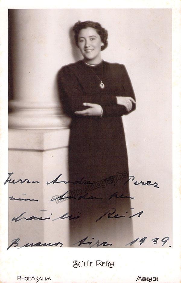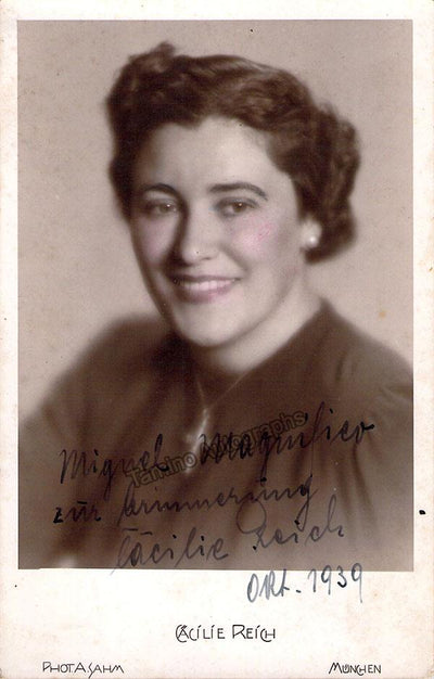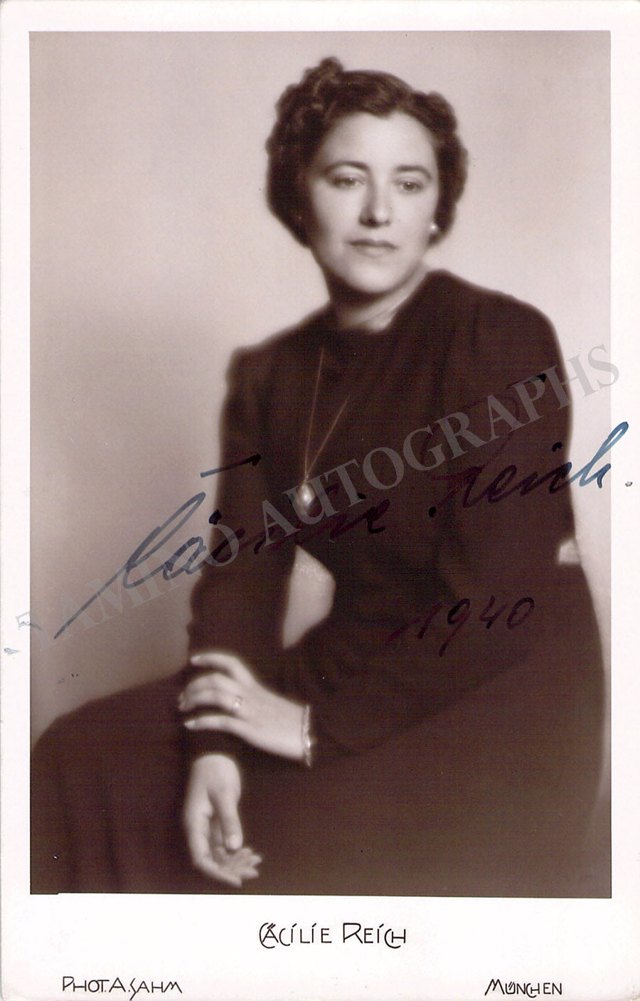 Signed postcard photograph, shown as herself, young, dated in 1940. Photo by Anton Sahm, Munich. Size is 3.5 x 5.5 inches, some wear on edges but in otherwise very good condition.