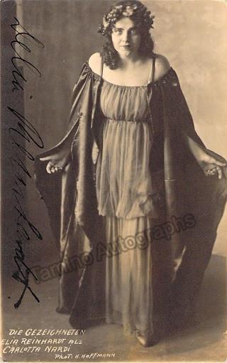 Signed photo postcard of the German soprano (1892-1974) as Carlotta in Franz Schreker's Die Gezeichneten. Size 3.5 x 5.5 inches.